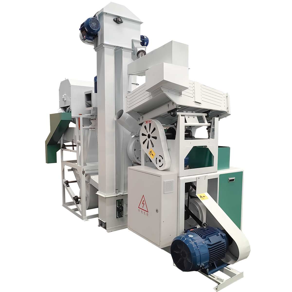 Continuous automatic operation: paddy cleaning → husking → rice polishing → grading.