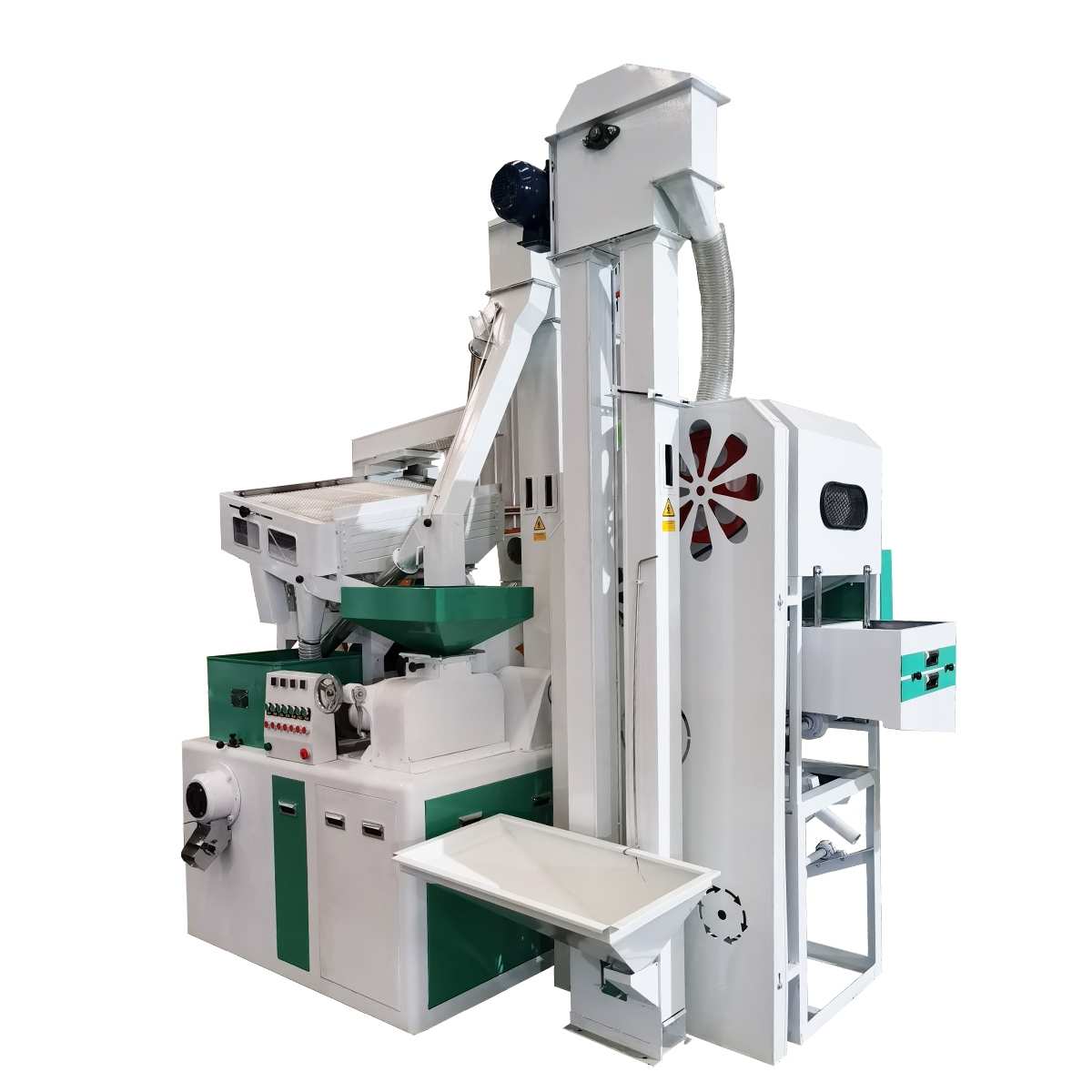 Its compact structure integrates cleaning, husking, whitening, and grading functions into one unit, reducing floor area and installation costs.
