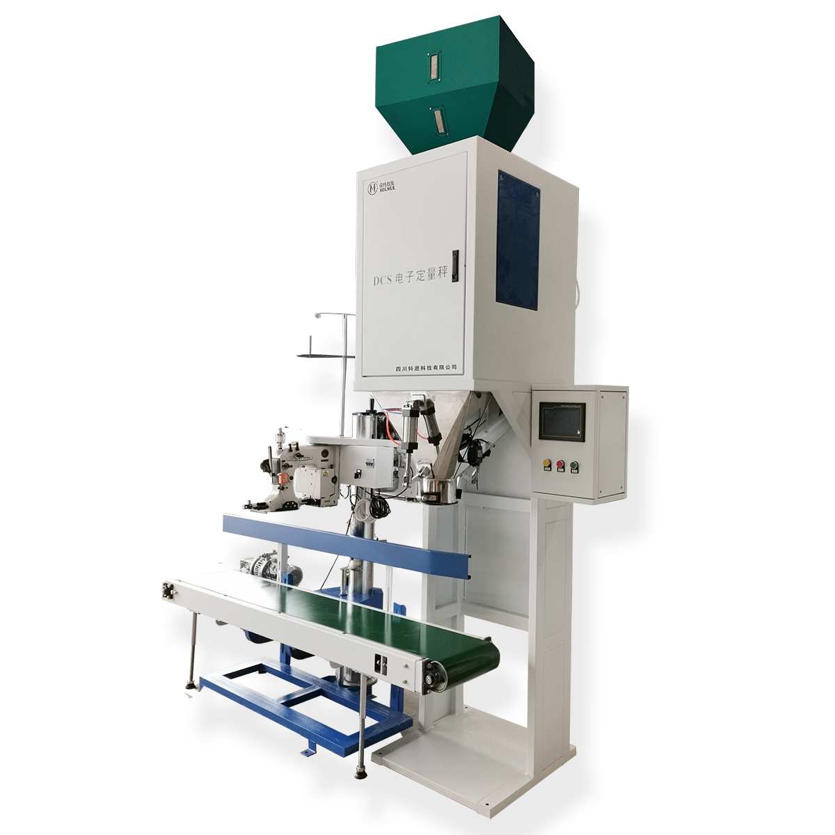 This rice bag filling equipment integrates a smart electronic control system and digital weighing sensors, ensuring accurate and stable operation.
